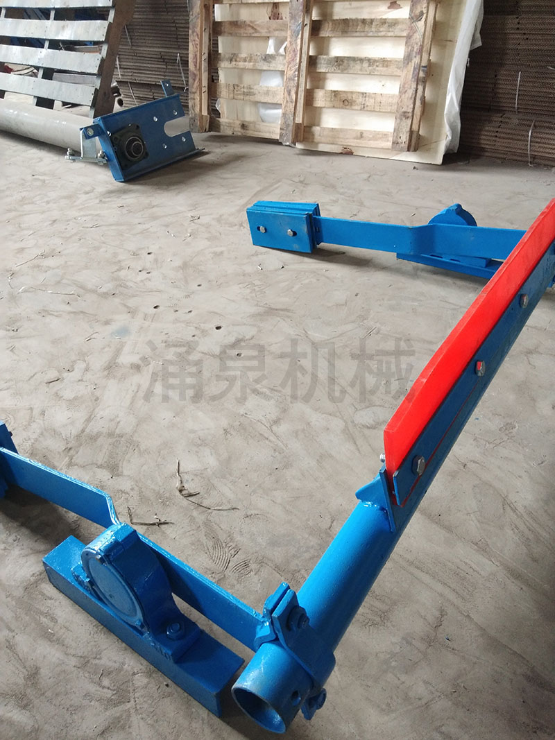2:清掃器安裝選擇在電動滾筒和改向滾筒的中間,膠帶跳動量最小,最平穩(wěn)的位置最佳。