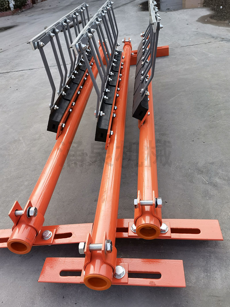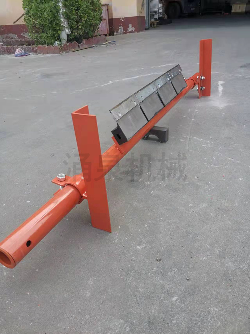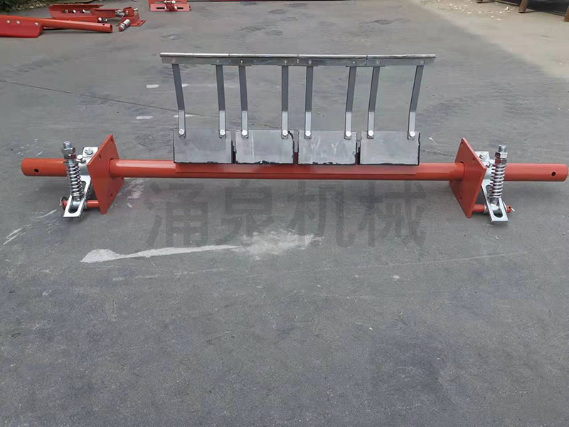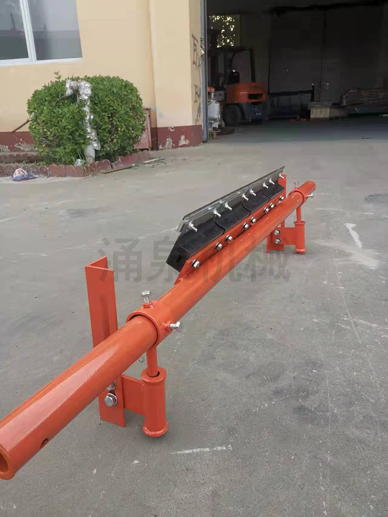 因此,為保證帶式輸送機正常運轉(zhuǎn),必須將輸送帶上的附著物清掃干凈。如果清掃裝置良好,對托輥、輸送帶等的壽命都可以延長。由此可見,清掃器在帶式輸送機上有著不可忽視的作用。