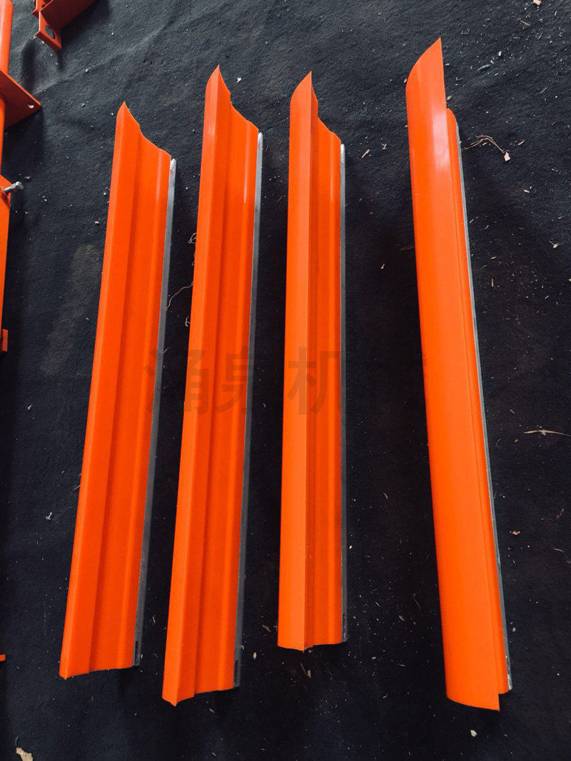 刮刀采用聚氨脂復(fù)合材料,利用模具一體加硫成形,刮刀面平整,直線度好,低摩擦、高耐磨、高強(qiáng)度,具有穩(wěn)定的刮料效果?捎行宄龤埩羝现(xì)粒、濕粘物料。預(yù)壓式調(diào)壓器確保刮刀與皮帶的穩(wěn)定接觸壓力。刮刀面由多塊窄幅聚氨脂刮板組成,具有空形緩沖孔,對(duì)各種皮帶都有良好跟隨性。聚氨酯刮刀